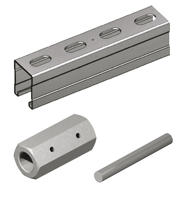钢材材质:一般采用的是Q235B,锌层有冷镀锌(电镀)和热浸镀锌,电镀锌镀锌层厚度比较薄外观漂亮,热镀锌镀锌层厚度比较厚点,目前支架较多采用的是热浸镀锌及电镀锌(镀锌层厚度一般在55~80μm),配件配件采用电镀。其中C型钢厚度需超2mm,配件需达5mm(我们产品都是超国标可对比)