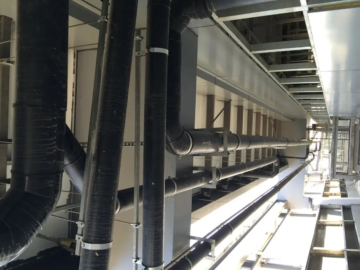 适用于各种类型、各种用途的建筑物屋面,包括平屋顶屋面也能适用,这一点解决了传统排水方式很难解决排除的问题;其排水悬吊管可作无坡度敷设,悬吊管始终保持同一高度,可以腾出更多有效的建筑机电、设备安装空间;相同管径排水泄流量大,可降低排水管管径或减少排水立管数量,节约安装空间;管材及管件(配件)的使用量减少;所需地下埋管量较少,有效减少现场施工量和土方开挖、回填工作量;管内水流流速大于1m/s,能使管道具有很好的自清自洁能力。