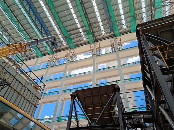 厂房屋顶虹吸式排水系统:位于通道两侧的建筑构件四周施工前应留出排水口,用通道引入的雨水经过分集水器进行输送,排到各个回水管道中。该建筑物每层排水口设有独立的建筑排水系统。每层排水口均应设在平衡水压的其他排水系统之内。防水层宜高出与排水沟壁平齐,水平净距不小于1.2m。